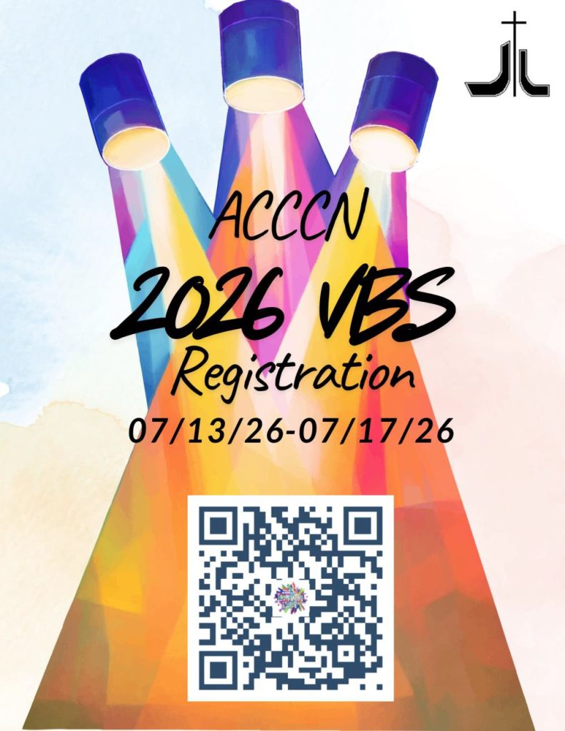 2026 VBS:7/13 – 17。報名已開啟,將於 6 月 28 日截止。誠摯邀請孩子
