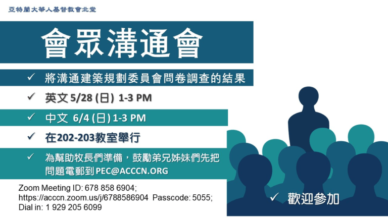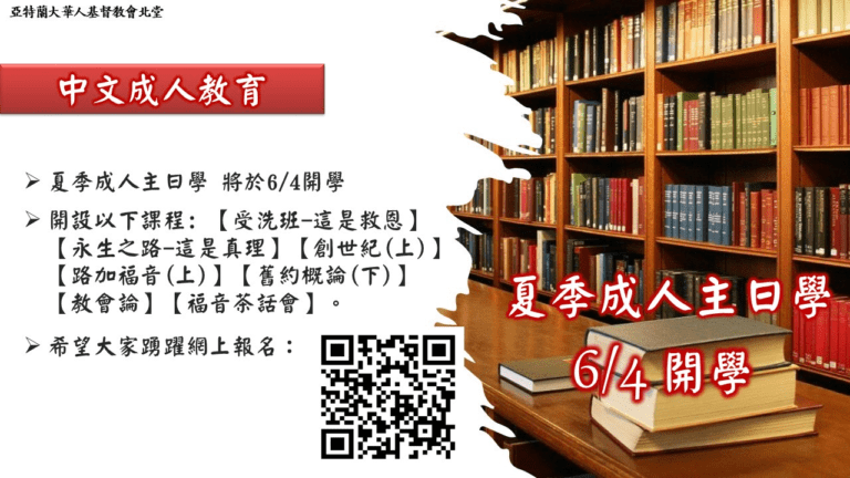 夏季成人主日学: 6/4日开学,开设以下课…