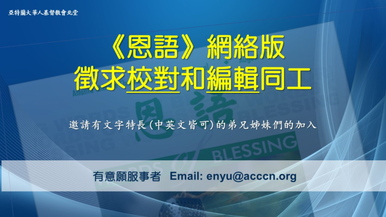 《恩语》网络版征求校对和编辑同工!