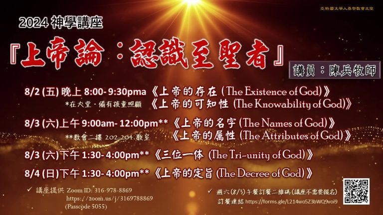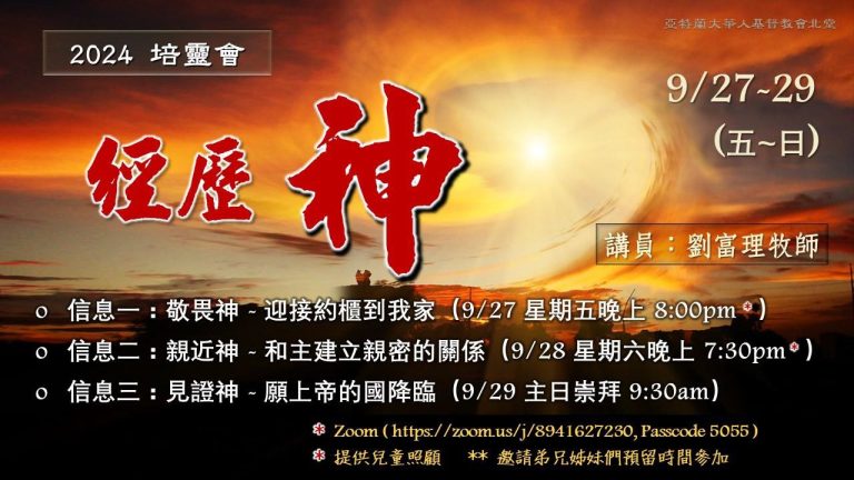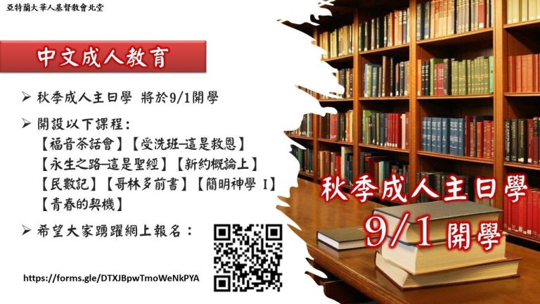 秋季成人主日学:将於 9/1 开学,开设以下…