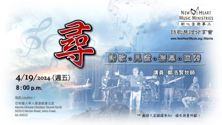 新心诗歌见证分享会:4/19 (五) 8:00pm